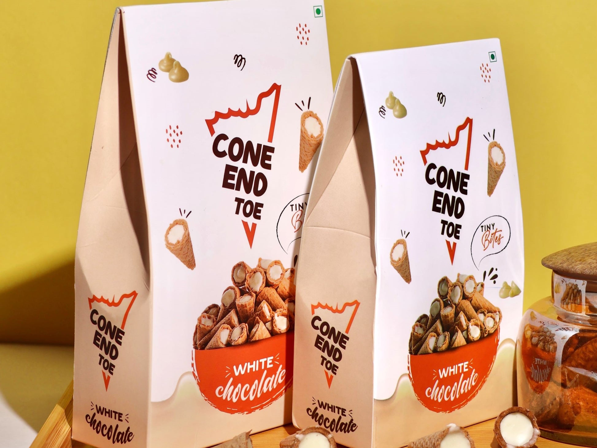 White Chocolate: The taste of rich, creamy, fresh milk and vanila put together with crunch waffle cone ens is what makes our White Chocolate Cone End Toes the perfect anytime-anywhere dessert.